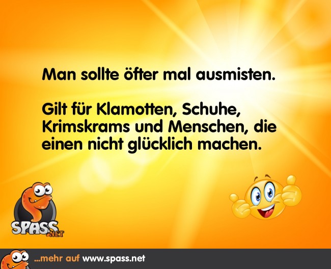 Spass.net » Lustige Bilder » Sprüche Ausmisten 15 1 Schreibe einen Kommentar Antwort abbrechenDeine E-Mail-Adresse wird nicht veröffentlicht. Erforderliche Felder sind mit * markiertKommentar * Name * E-Mail-Adresse * Website Meinen Namen, meine E-Mail-Adresse und meine Website in diesem Browser für die nächste Kommentierung speichern. Δ