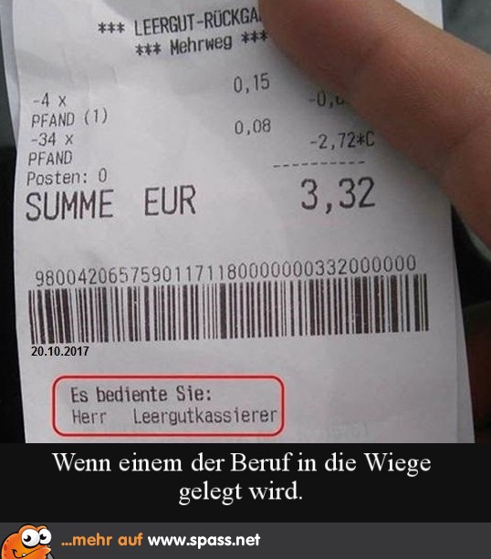 Spass.net » Lustige Bilder » Sprüche Leergutkassierer 31 1 Schreibe einen Kommentar Antwort abbrechenDeine E-Mail-Adresse wird nicht veröffentlicht. Erforderliche Felder sind mit * markiertKommentar * Name * E-Mail-Adresse * Website Meinen Namen, meine E-Mail-Adresse und meine Website in diesem Browser für die nächste Kommentierung speichern. Δ