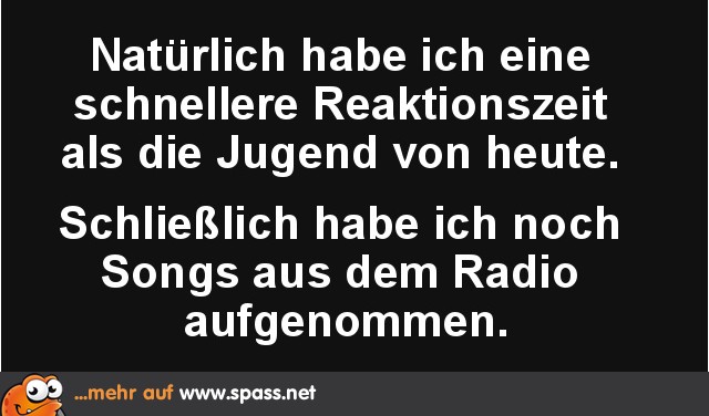 Spass.net » Lustige Bilder » Sprüche Reaktionszeit 37 6 Schreibe einen Kommentar Antwort abbrechenDeine E-Mail-Adresse wird nicht veröffentlicht. Erforderliche Felder sind mit * markiertKommentar * Name * E-Mail * Website Meinen Namen, meine E-Mail-Adresse und meine Website in diesem Browser für die nächste Kommentierung speichern. Δ